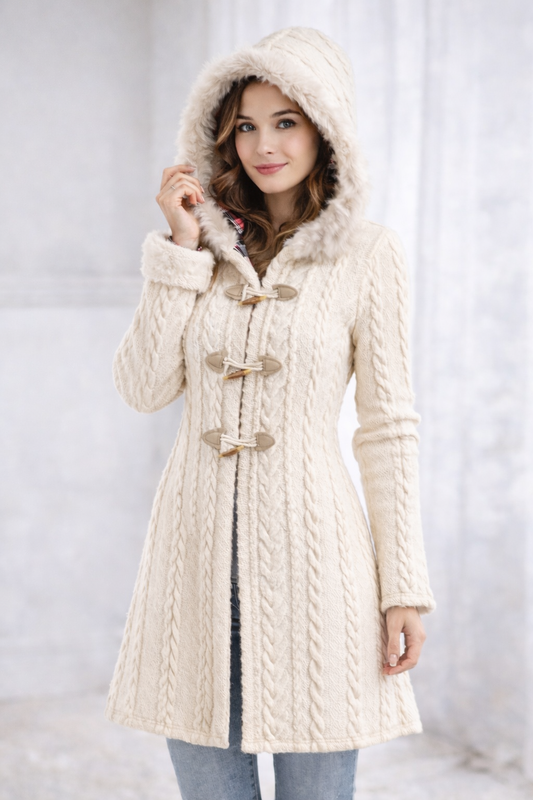 The Winter Obsession – Long Knit Coat with Faux-Fur Hood